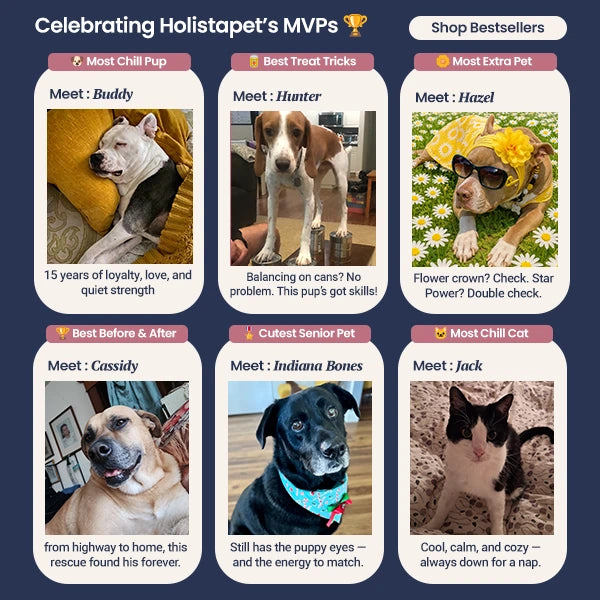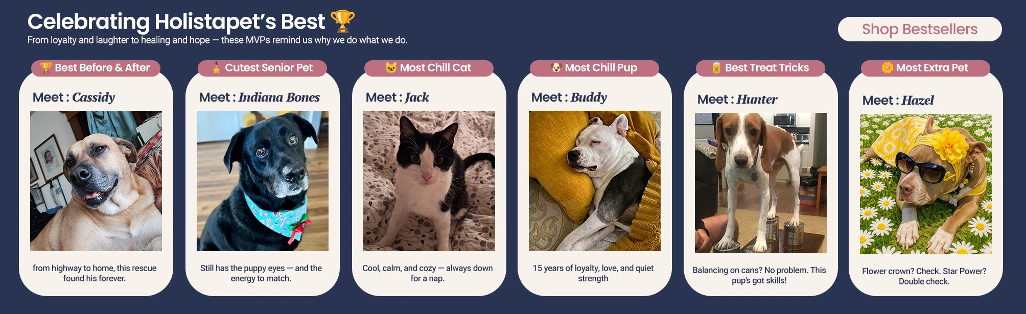 Holistapet is the #1 online source for CBD for dogs and cats. Check out our top selling options including CBD oil for dogs and CBD cat treats. All our ingredients are 100% natural. We also offer highly beneficial supplements from pet probiotics to multivitamins. Keep you pet healthy and happy with our top items.