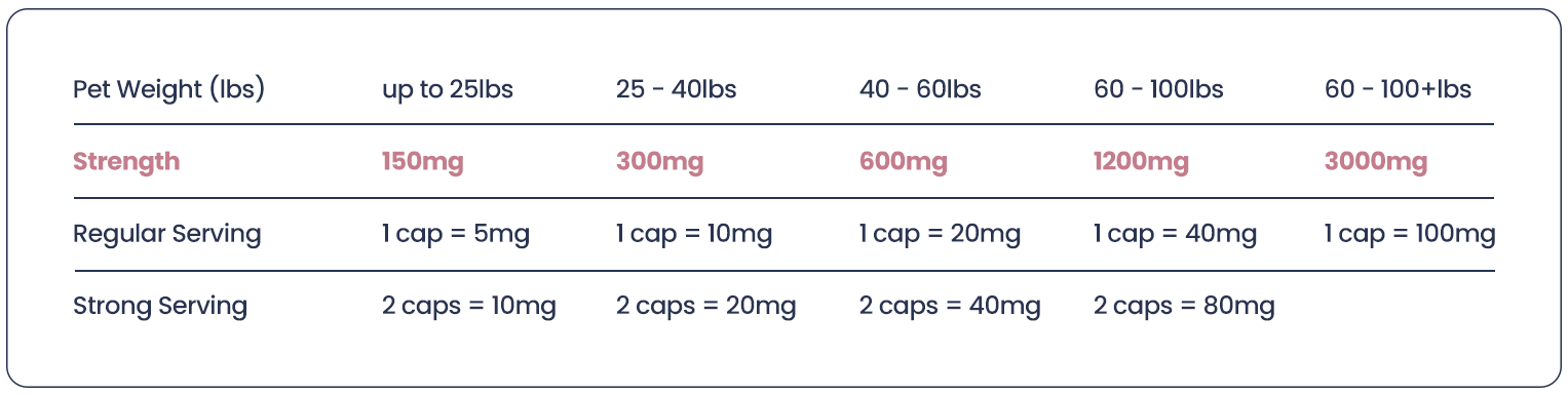 Explore our Pet CBD Dosing Chart for precise dosing recommendations tailored to your products. Alternatively, you can navigate here to discover the recommended serving sizes for CBD Capsules.
